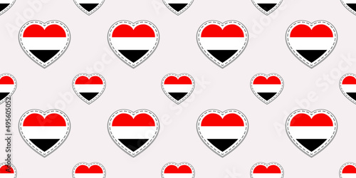 Yemen flag seamless pattern. Yemeni vector stickers. Love hearts symbols flags background. Good choice for sports pages, travel, geographic, elements. patriotic wallpaper.