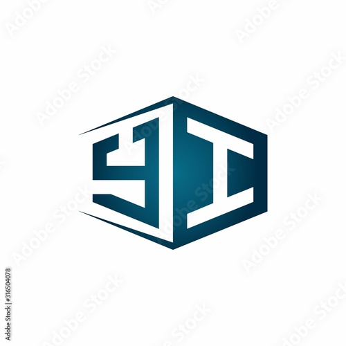 YI monogram logo with hexagon shape and negative space style ribbon design template