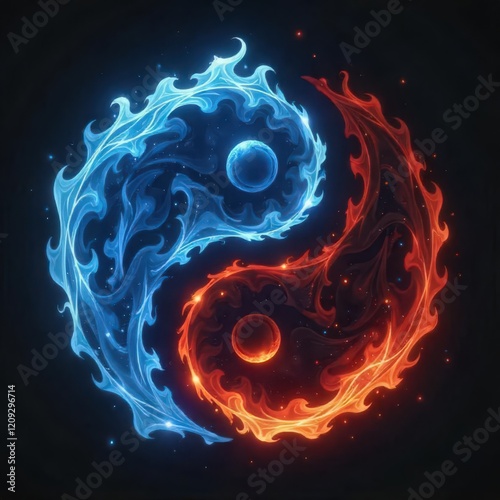 Yin and Yang Symbol with Abstract Flames of Fire and Ice