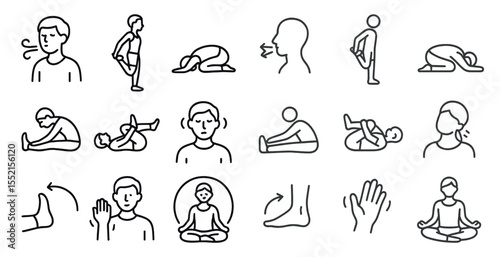 Yoga and relaxation line icons set – outline, fitness, mindfulness symbols