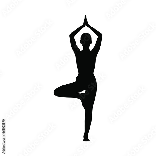 yoga pose silhouette, silhouette pose of a yoga girl, A dramatic silhouette of a hand, rendered in minimalist black and white. This abstract design element evokes feelings of mystery and power