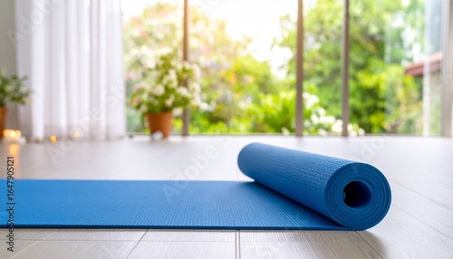 yoga studio with blue matres