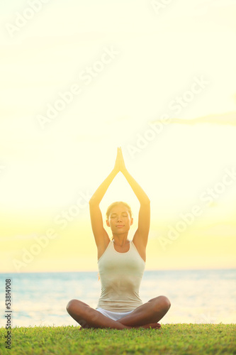 Yoga woman relaxing by sea