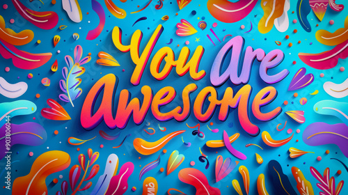 You are awesome text overlay over blue background