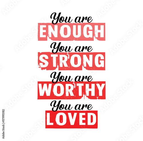 You are enough, strong, worthy, loved typography Vector for T-shirt Design, mug, bag, poster, banner, pillow etc. Love Motivational, Inspirational vector design