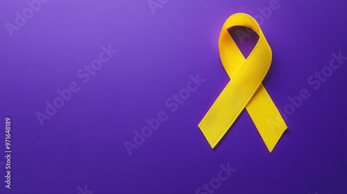 You Are Not Alone: Bright Yellow Suicide Prevention Awareness Ribbon Shining Against a Purple Canvas, Representing Support, Togetherness, and Hope