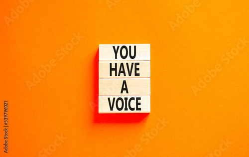 You have a voice symbol. Concept words You have a voice on wooden blocks. Beautiful orange table orange background. Business, psychological you have a voice concept. Copy space.
