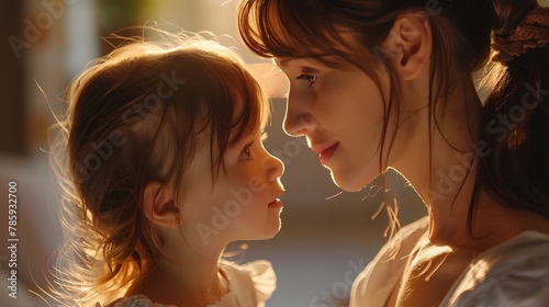 You truly light up my life. Mother and daughter stand face to face and show each other affection. Girlfriends daughter's day, mother's day