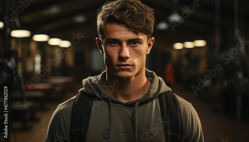 Young adult man in casual clothing looking at camera generated by AI