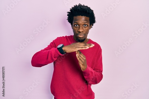 Young african american man wearing casual clothes doing time out gesture with hands, frustrated and serious face