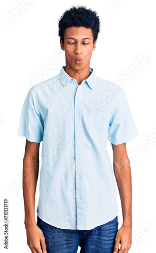 Young african american man wearing casual clothes making fish face with lips, crazy and comical gesture. funny expression.