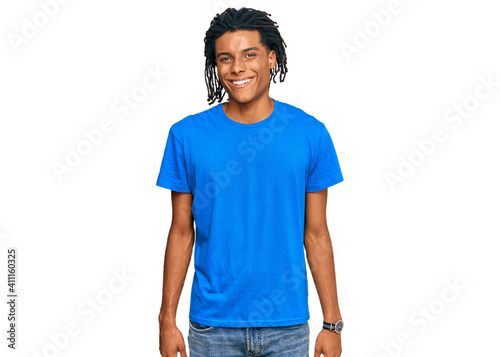 Young african american man wearing casual clothes with a happy and cool smile on face. lucky person.