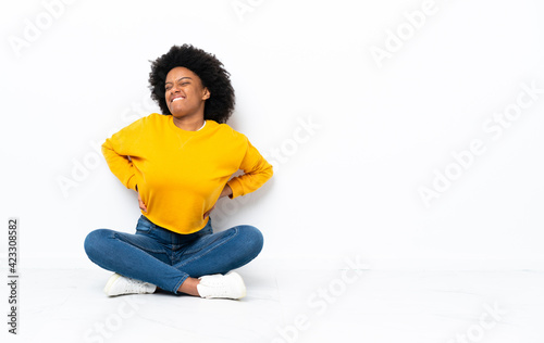 Young African American woman sitting on the floor suffering from backache for having made an effort