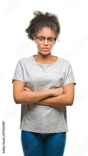 Young afro american woman wearing glasses over isolated background skeptic and nervous, disapproving expression on face with crossed arms. Negative person.