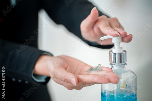 Young and young businessmen wash their hands with gel, alcohol, or soap to kill bacteria after the covid-19 virus has spread to prevent the spread of germs and bacteria.