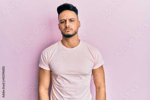Young arab man wearing casual clothes depressed and worry for distress, crying angry and afraid. sad expression.
