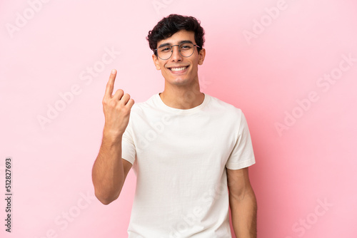 Young Argentinian man isolated on pink background doing coming gesture