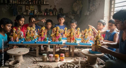 Young Artisans Crafting Idols in a Workshop Setting