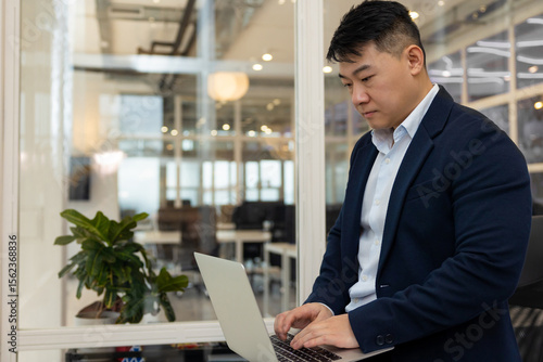 Young asian businessman working on a laptop in his office