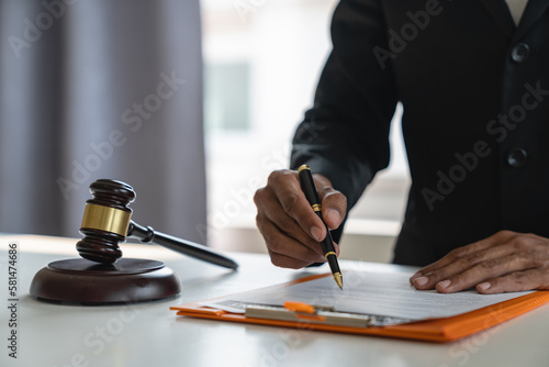 Young Asian lawyer, legal advisor working on financial information Check account documents Detailed legal information before signing the contract Business venture agreement, justice concept.