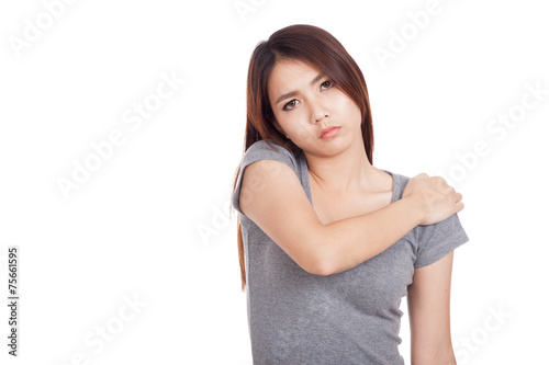Young Asian woman got shoulder pain