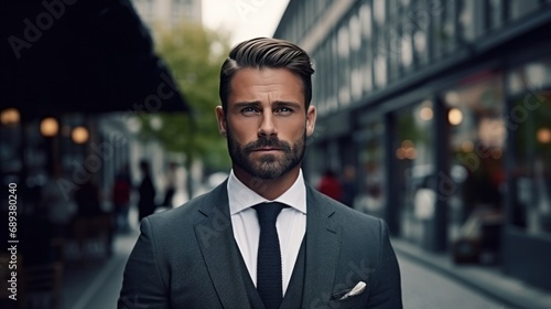 young attractive businessman in suit beard,