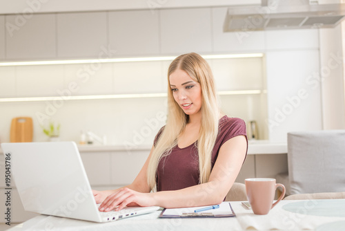Young beautiful girl with a laptop at home