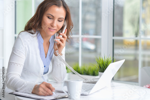 young beautiful woman working with laptop