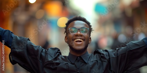 Young Black graduate celebrates achievement symbolizing success and future prospects in education. Concept Graduation, Achievement, Success, Education, Future Prospects