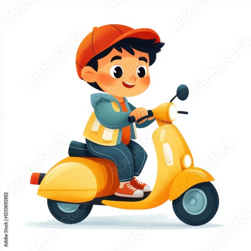 Young Boy Enjoying a Joyful Ride on a Cute Yellow Scooter