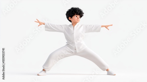 Young Boy Practicing Tai Chi in White Uniform Traditional Chinese Martial Arts Peaceful