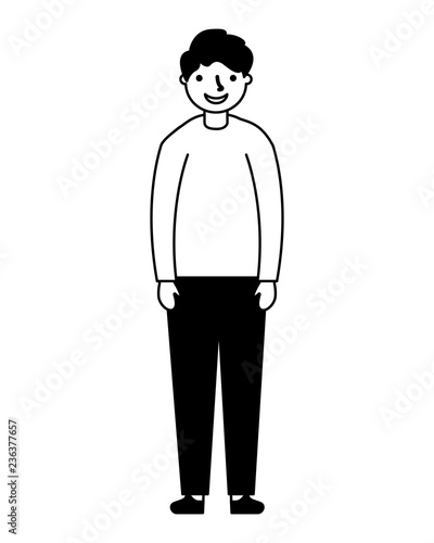 young boy standing on white background