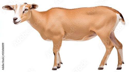 Young Brown Goat Standing Gracefully in a Natural Outdoor Setting with a Calm Expression