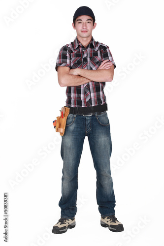 Young builder stood with arms folded