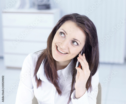 young business woman talking on mobile phone in office