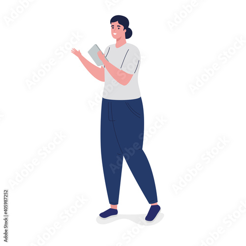 young business woman with notebook avatar character vector illustration design