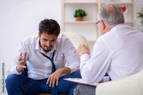 Young businessman employee visiting psychologist