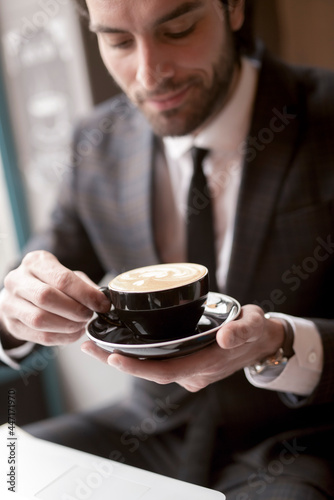 Young businessman enjoying his morning cappuccino