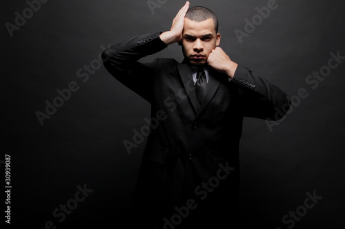 Young businessman in a black suit.