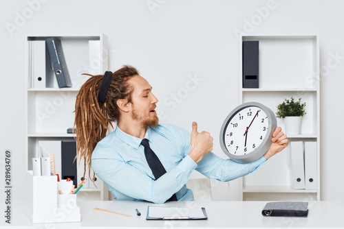 young businessman with alarm clock