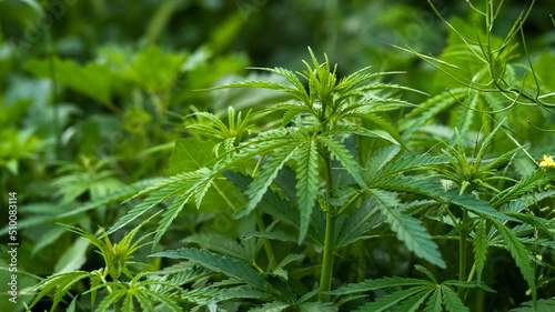 Young cannabis plant growth in the wild