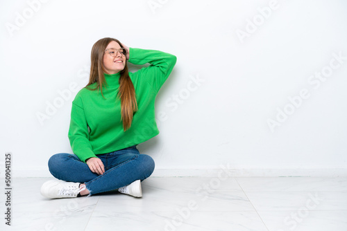 Young caucasian woman sitting on the floor isolated on white background has realized something and intending the solution
