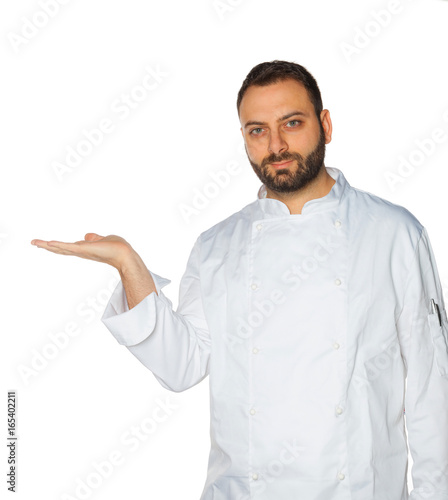 Young chef on white background.