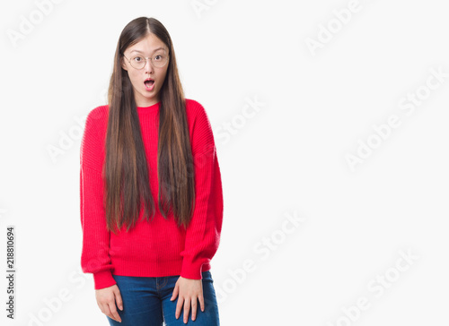 Young Chinese woman over isolated background wearing glasses afraid and shocked with surprise expression, fear and excited face.