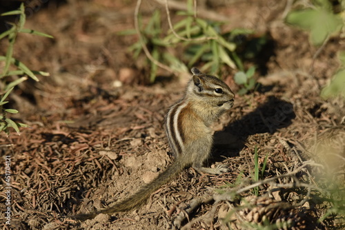 Young chipmunk eating in early morning Bloods lake trail, Utah