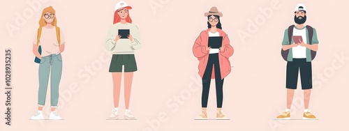 Young college students, flat illustration style vector cartoon character design
