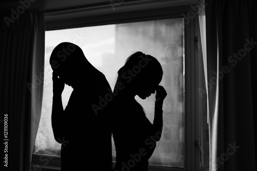 Young Couple Arguing and Fighting. Domestic Violence and Emotional abuse Scene, Stressed Woman in a Dark Hallway of Apartment. Dramatic Scene
