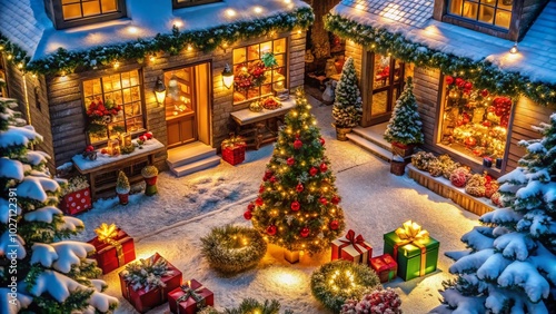 Young Couple Holiday Shopping in a Cozy Winter Store Filled with Festive Decorations