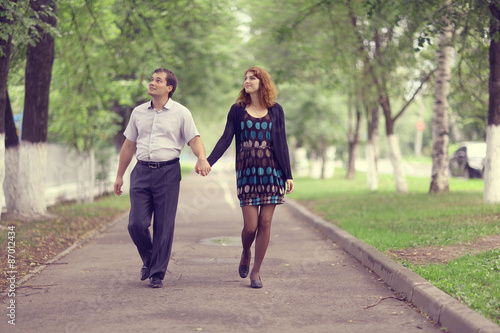 Young couple hugging in the park summer