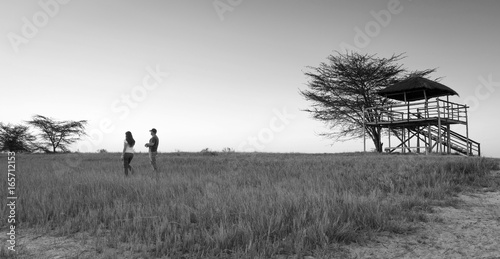 Young Couple on African Safari Black And White